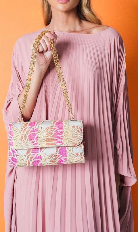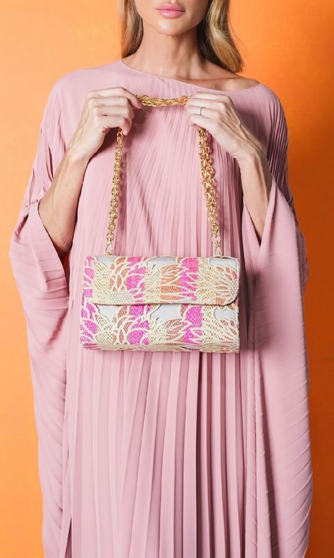 Detalhe: alça de corrente em banho na cor ouro.