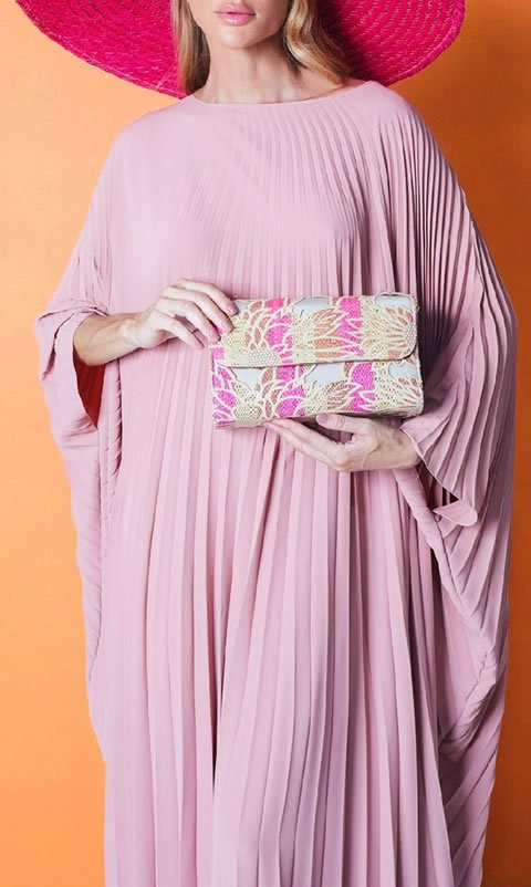 Bolsa CRIVO, Confeccionada em palha colorida bordada com desenhos florais, acabamento em lona com pintura da artista visual de Nicole Lumière na aba interna, representando a força feminina.
