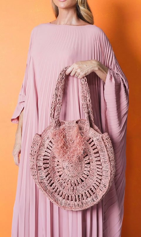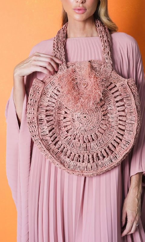 Bolsa TAMIRES, Tramada com fios de palha de buriti em crochê com diferentes pontos.